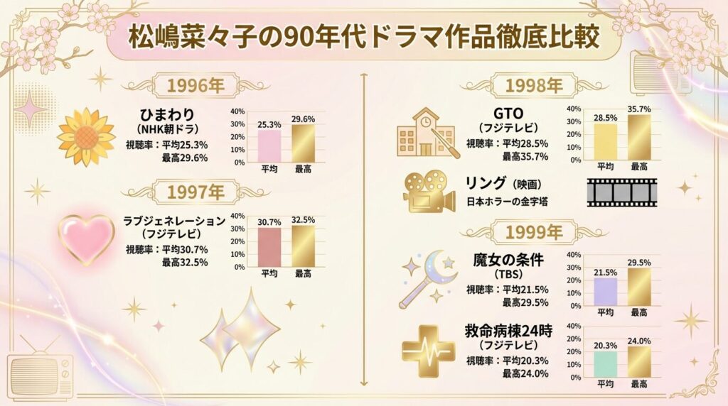 20代で次々とヒット作を生み出した松嶋菜々子さんの活躍は、まさに平成を代表する女優の一人と言えますよね。